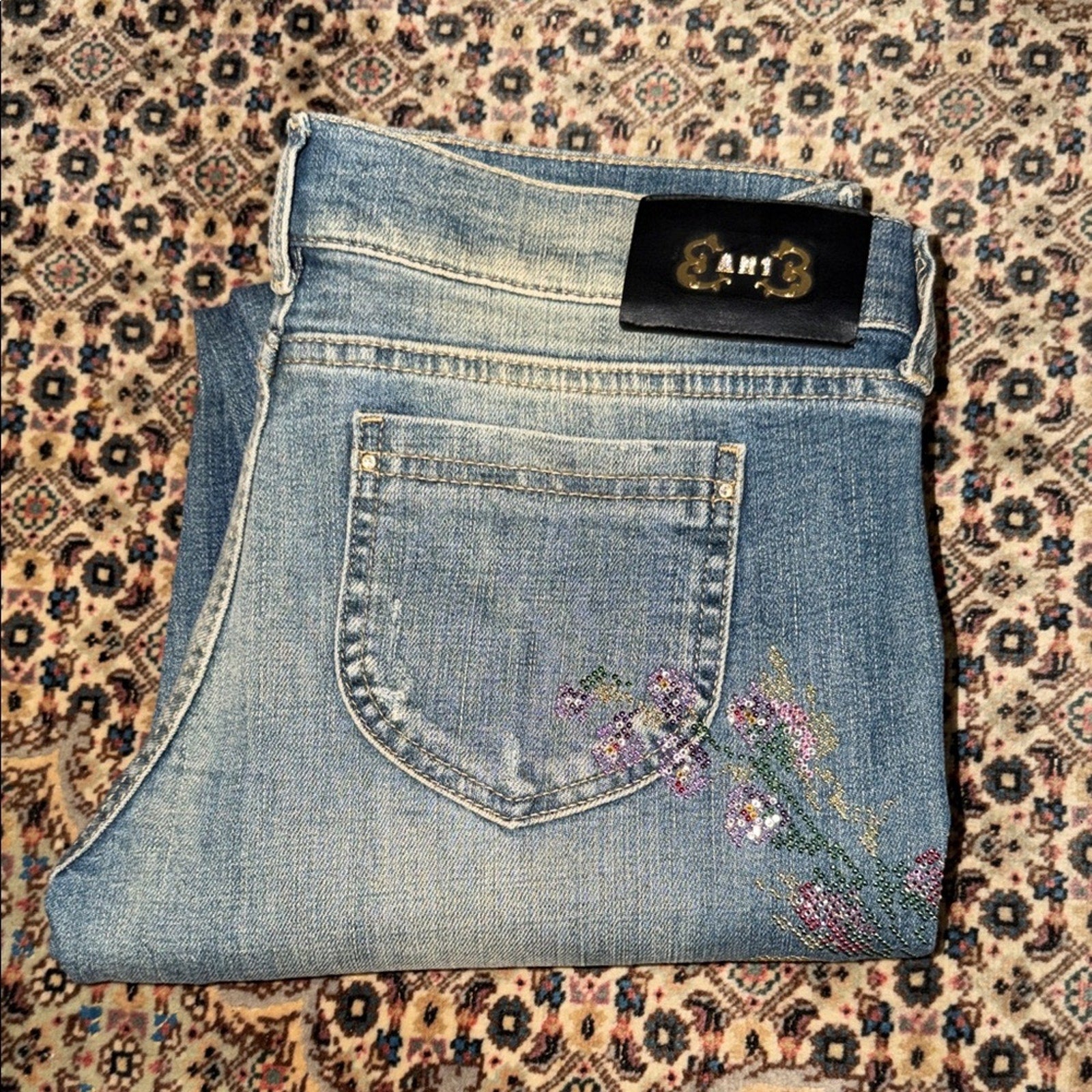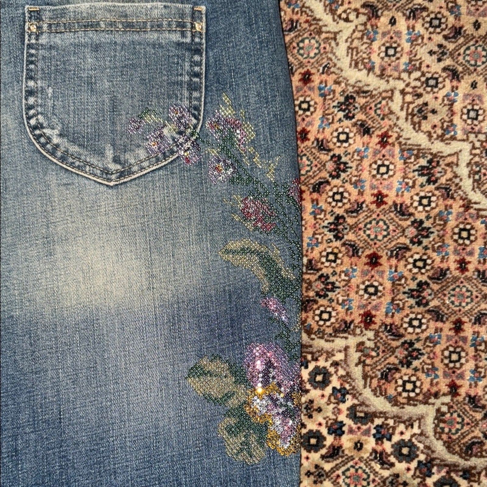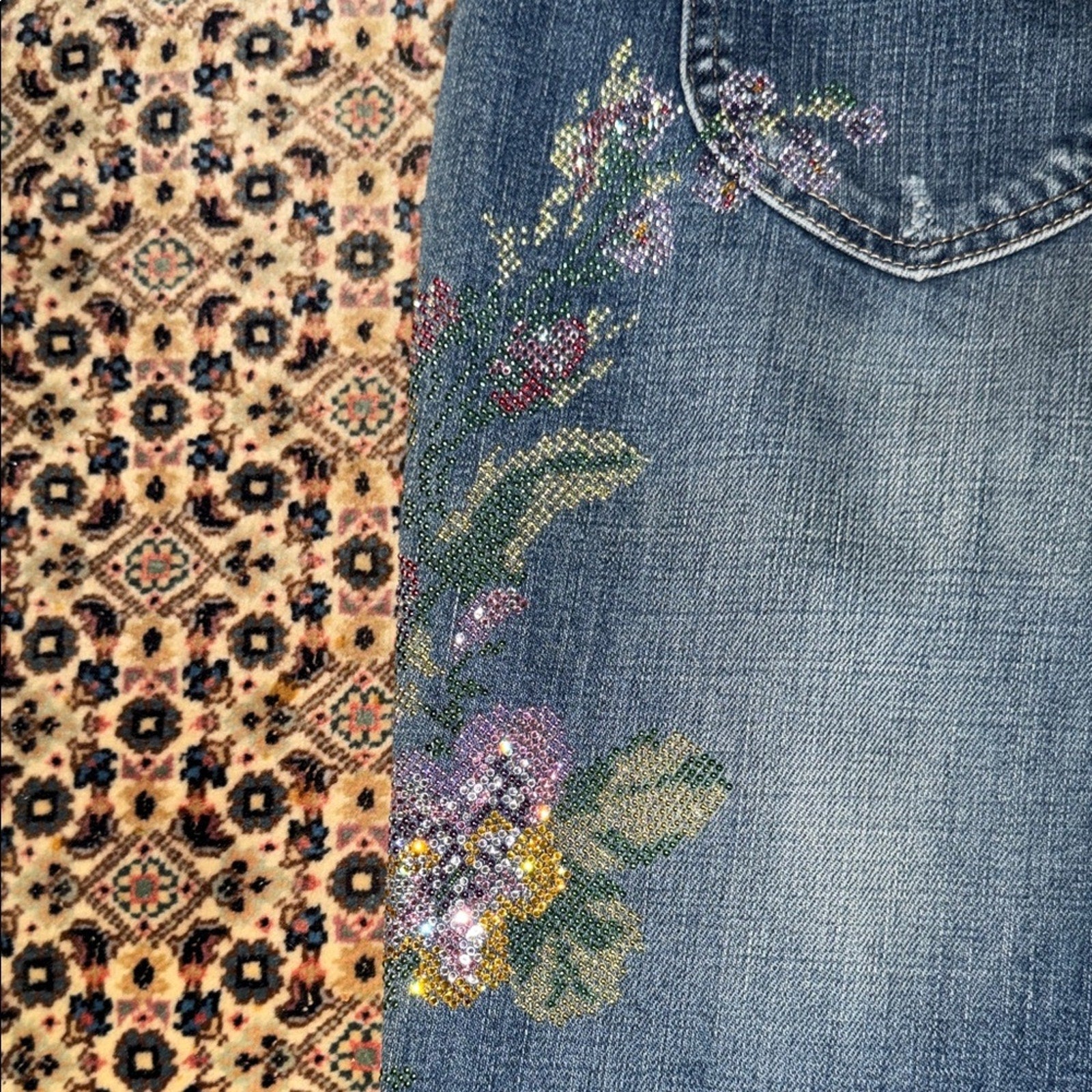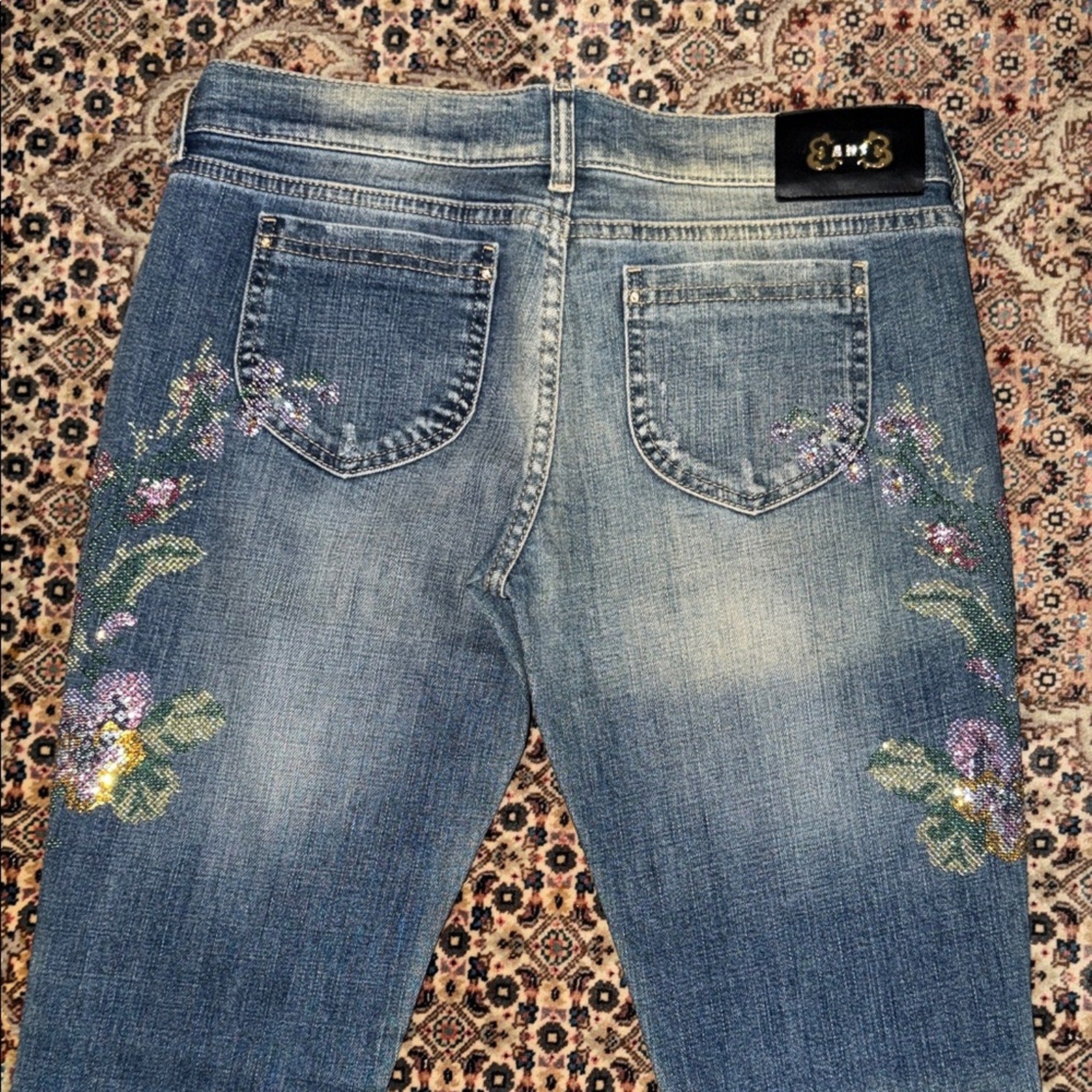 #Ean13 #SwarovskiCrystals #ItalianDenim #DesignerJeans #LuxuryFashion #FloralDenim
