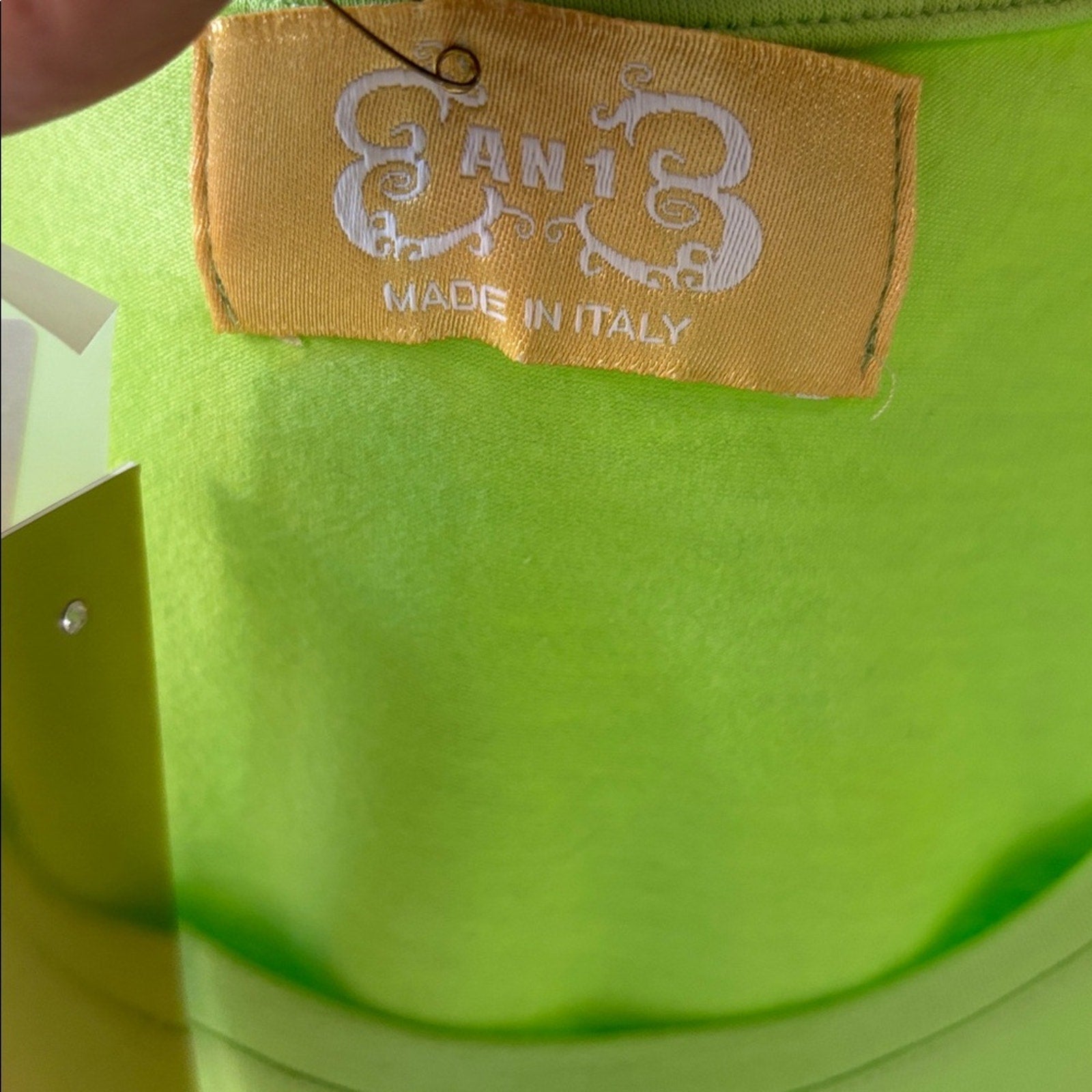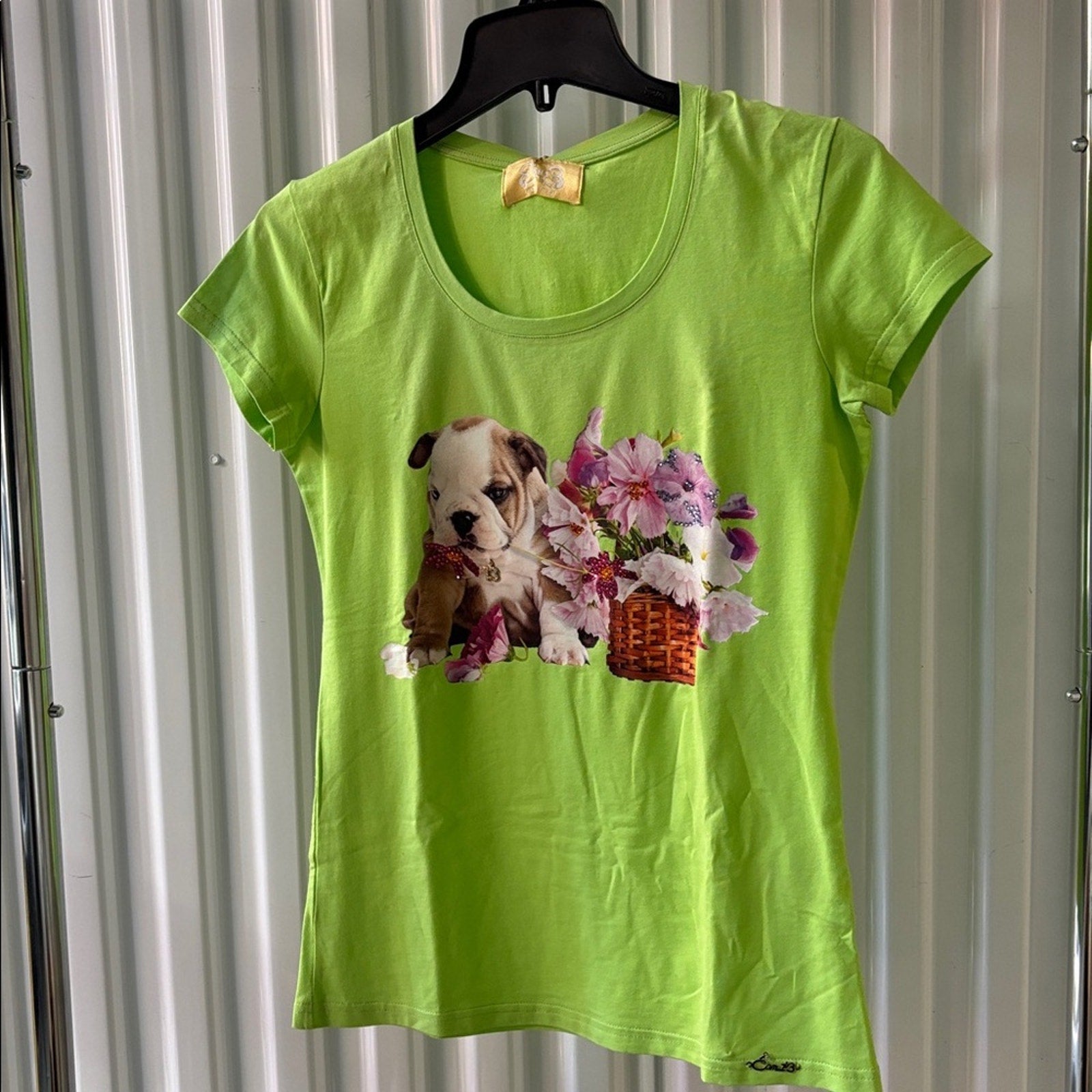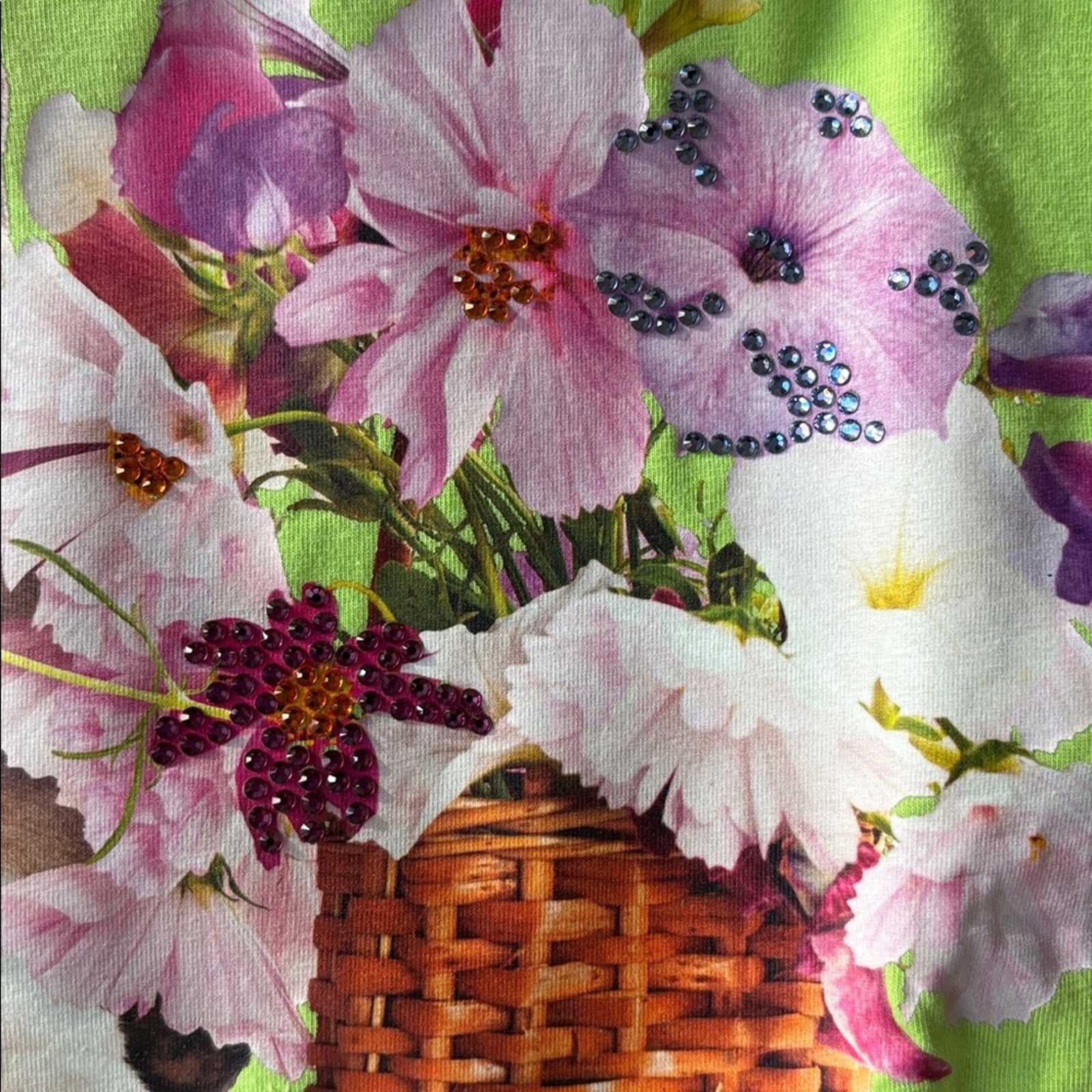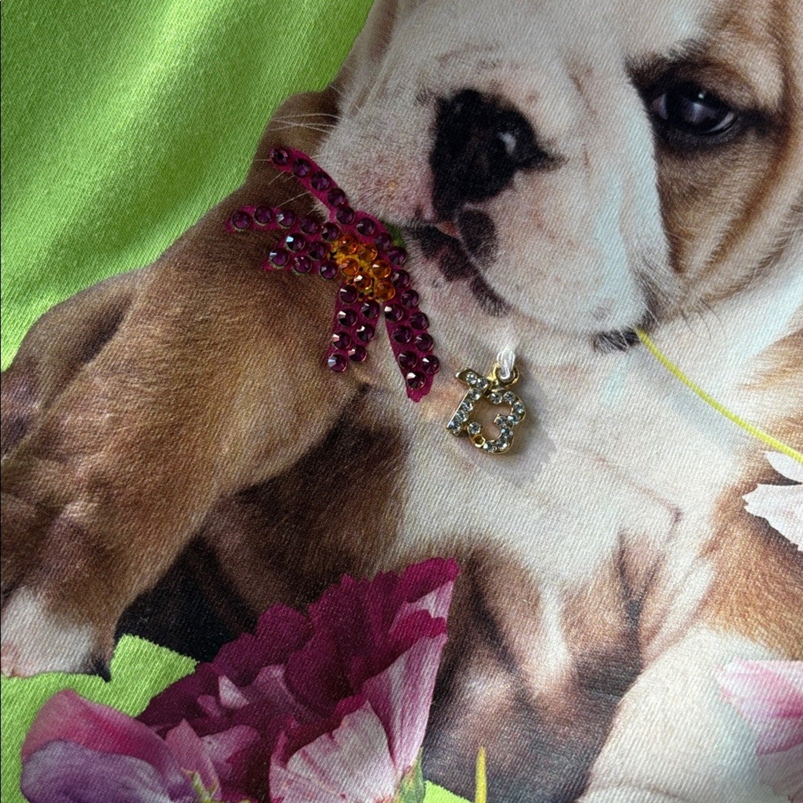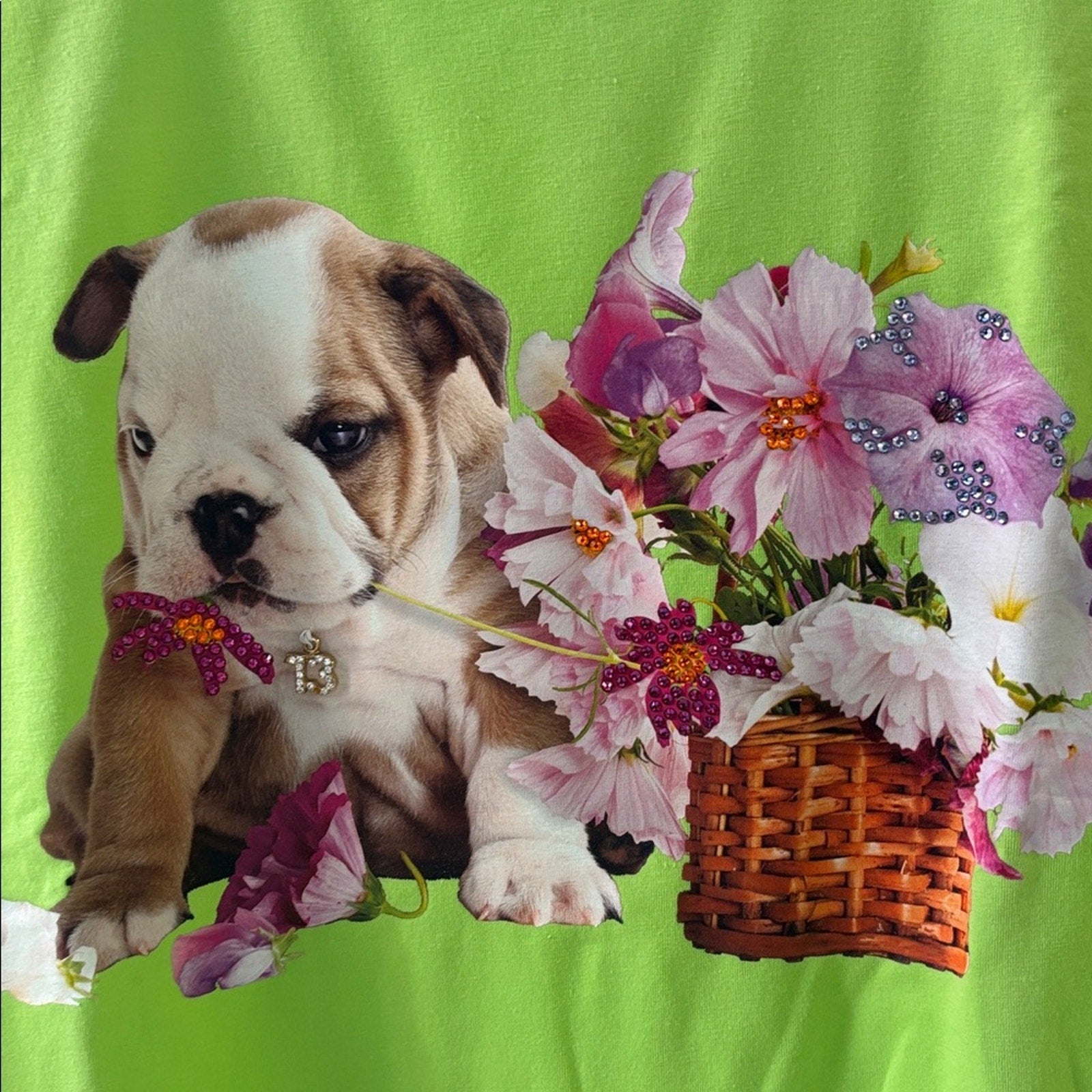 NWT Swarovski Lime Green Blouse with Puppy and Floral Design Size M