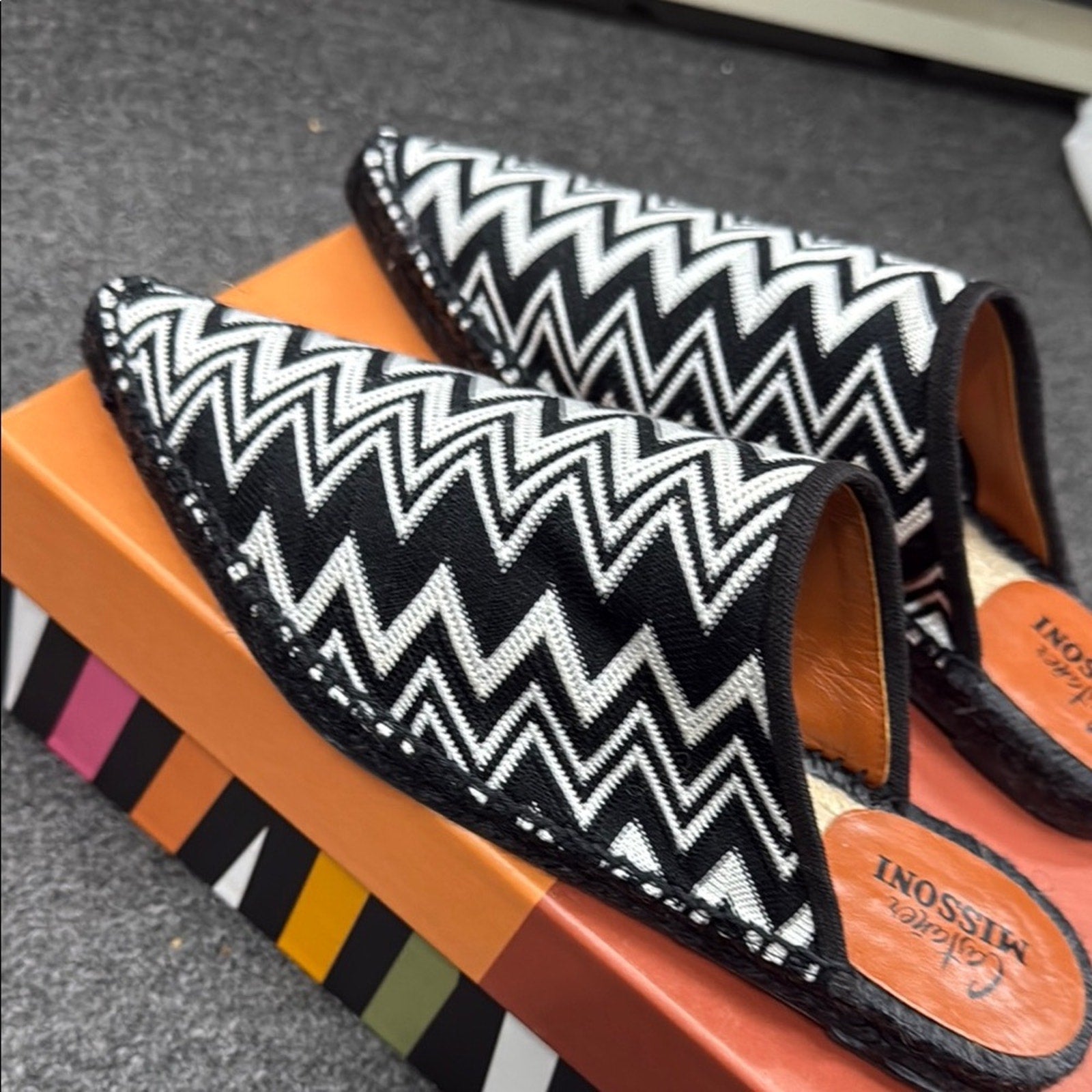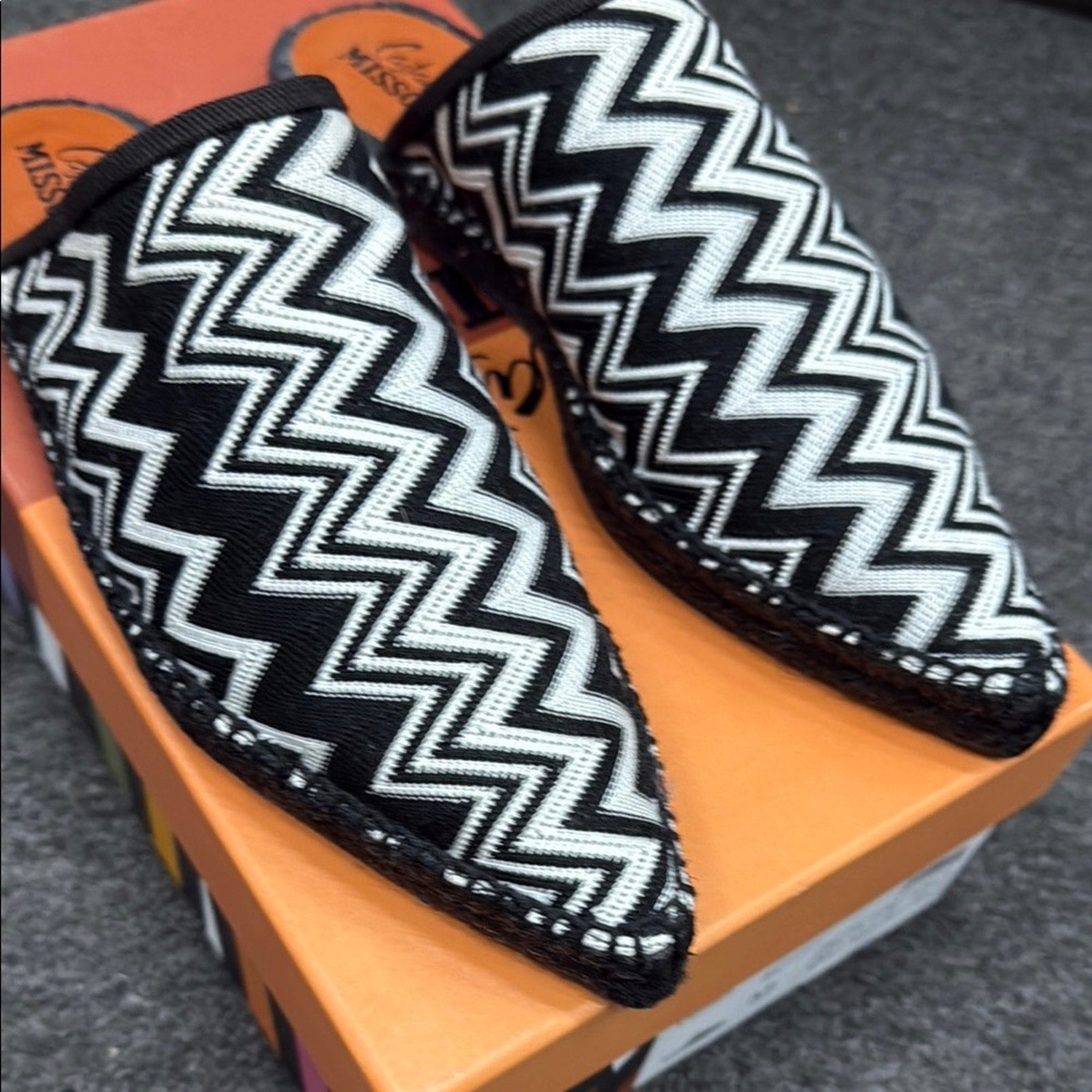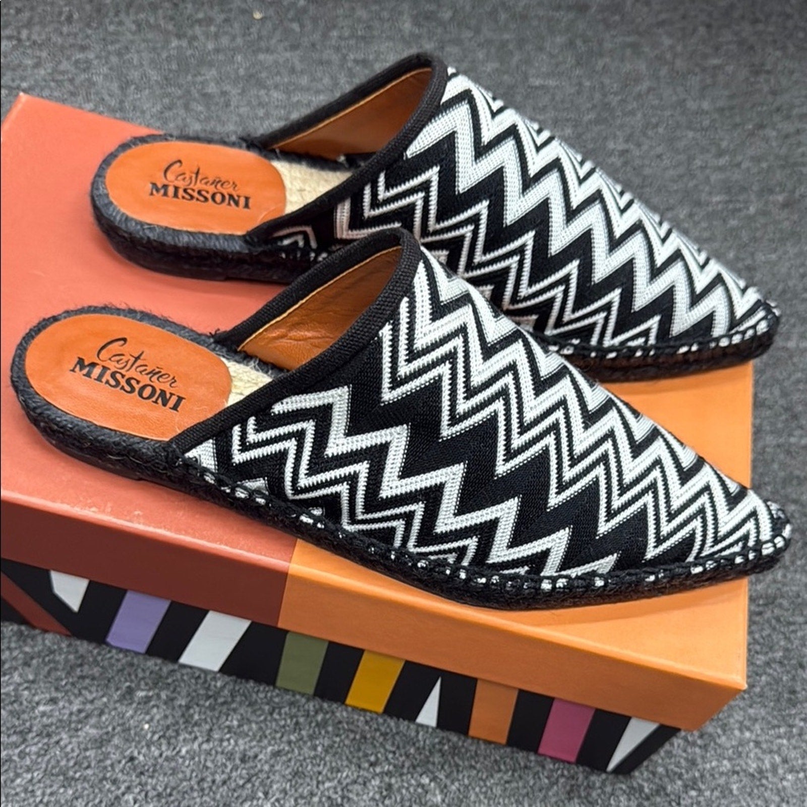 NWT Castaner Missoni Black and White Zigzag espadrilles loafer Size 37 US 7