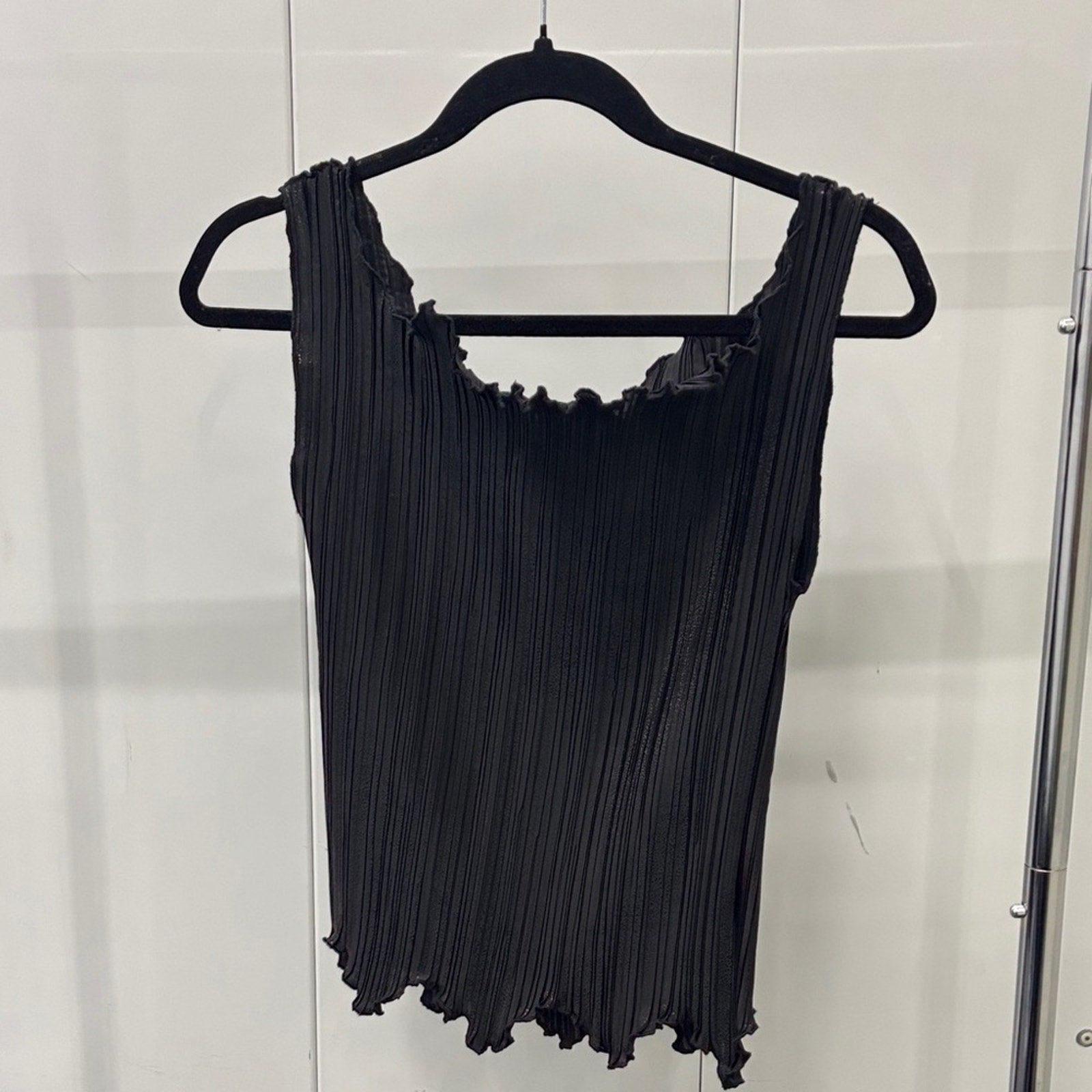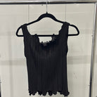 Elevate your wardrobe with this chic black pleated tank top. Perfect for versatile styling, it offers a sleek and comfortable fit.