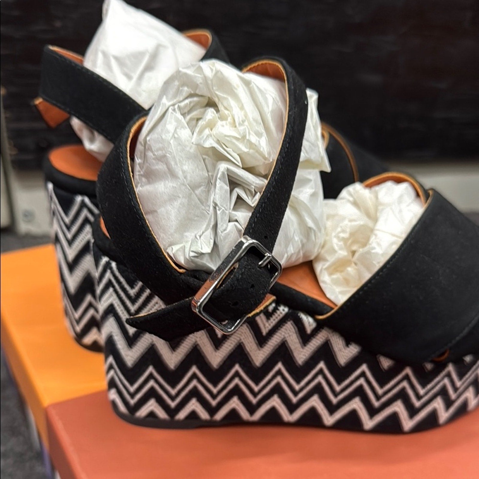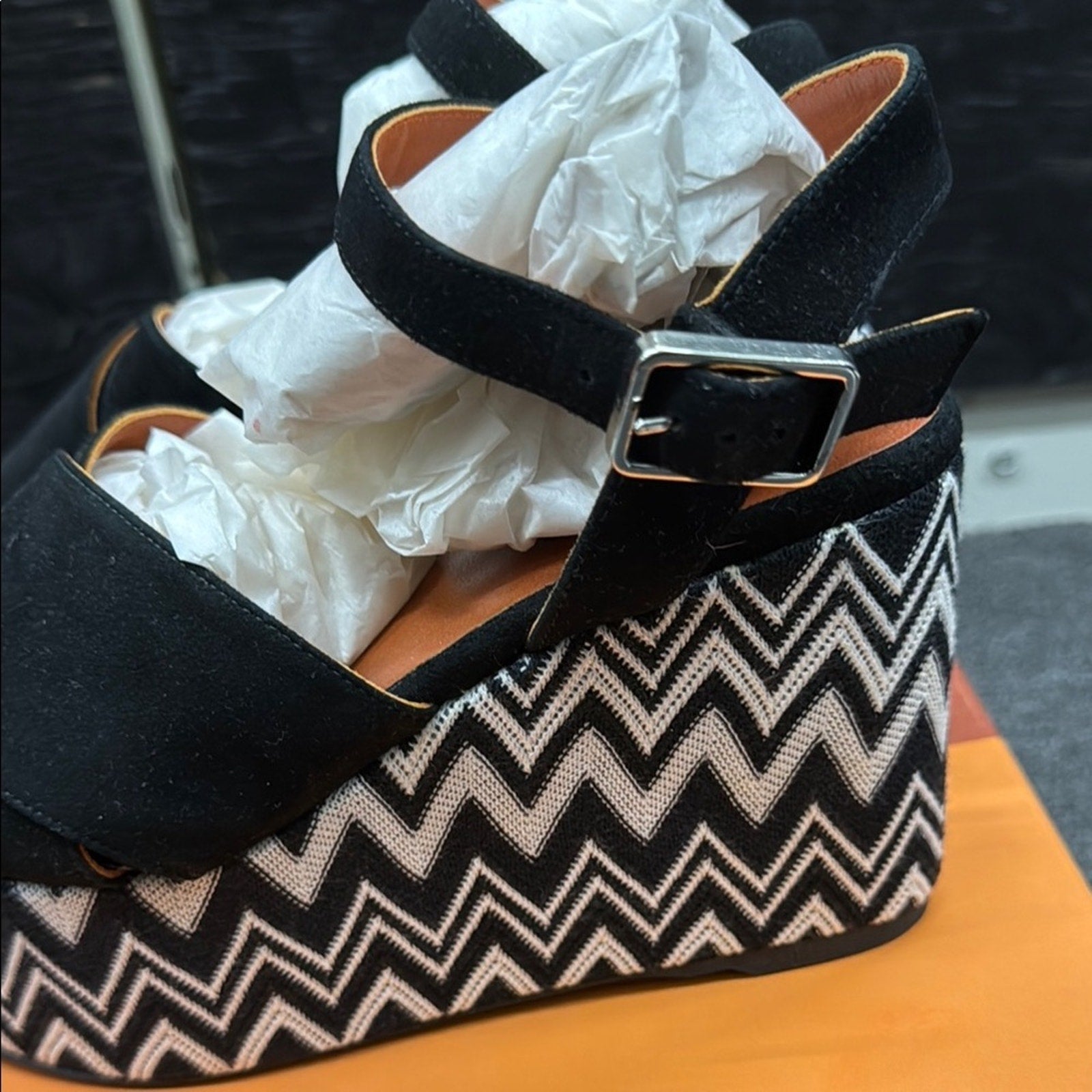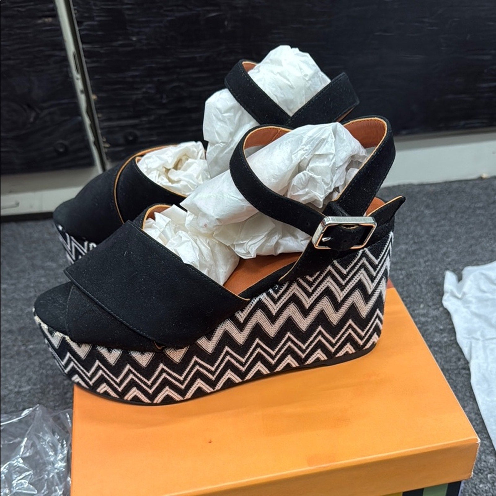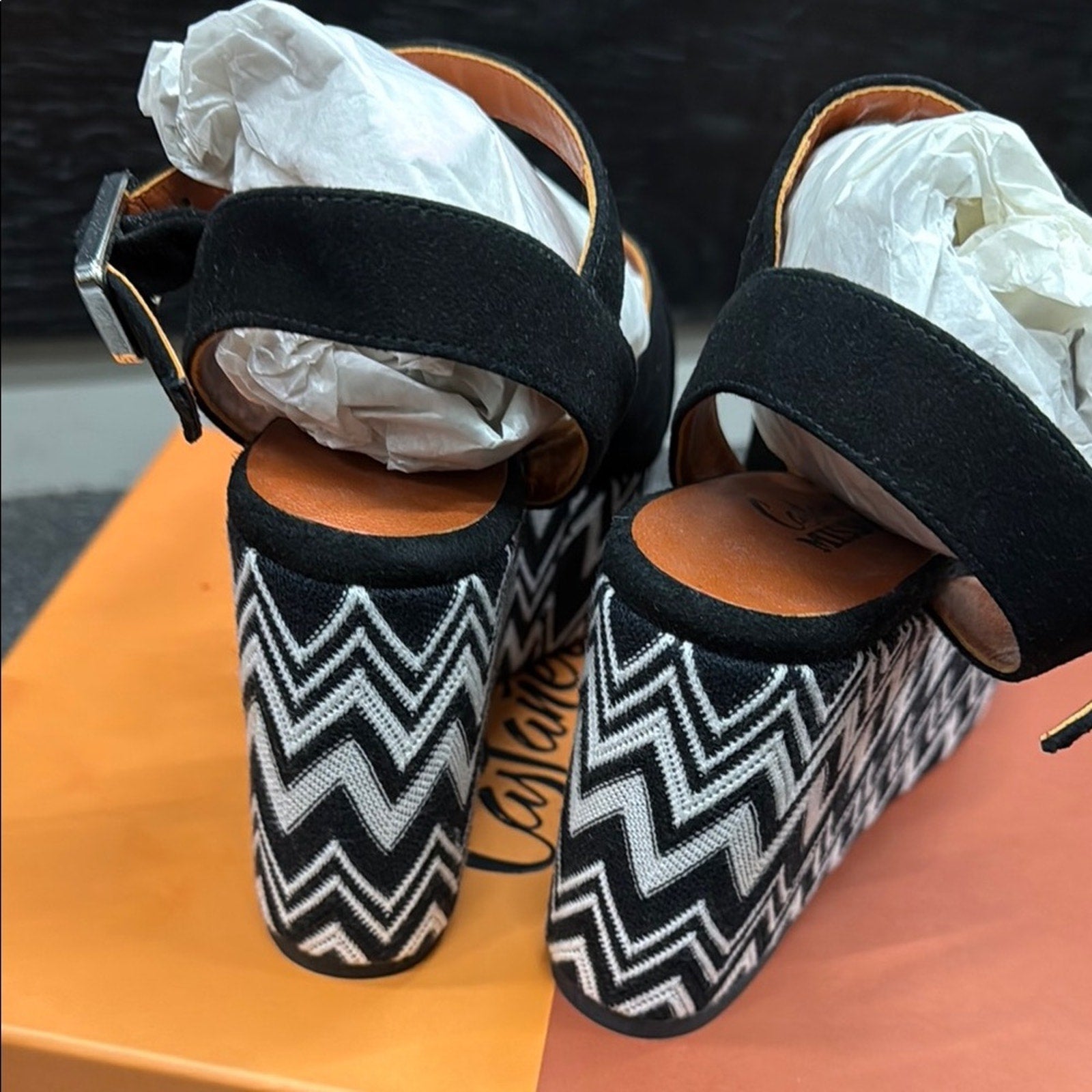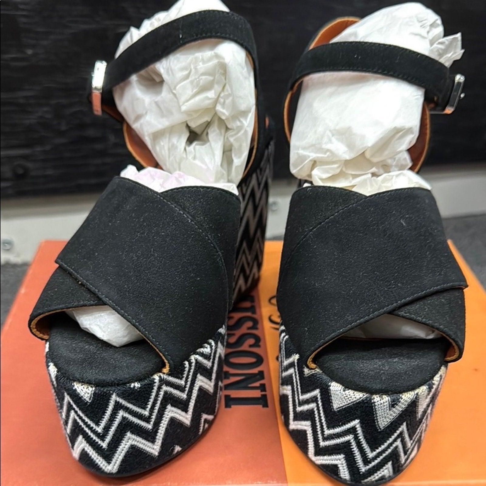 NWT Missoni Black and White Zigzag Platform Wedges Size 36 US 6