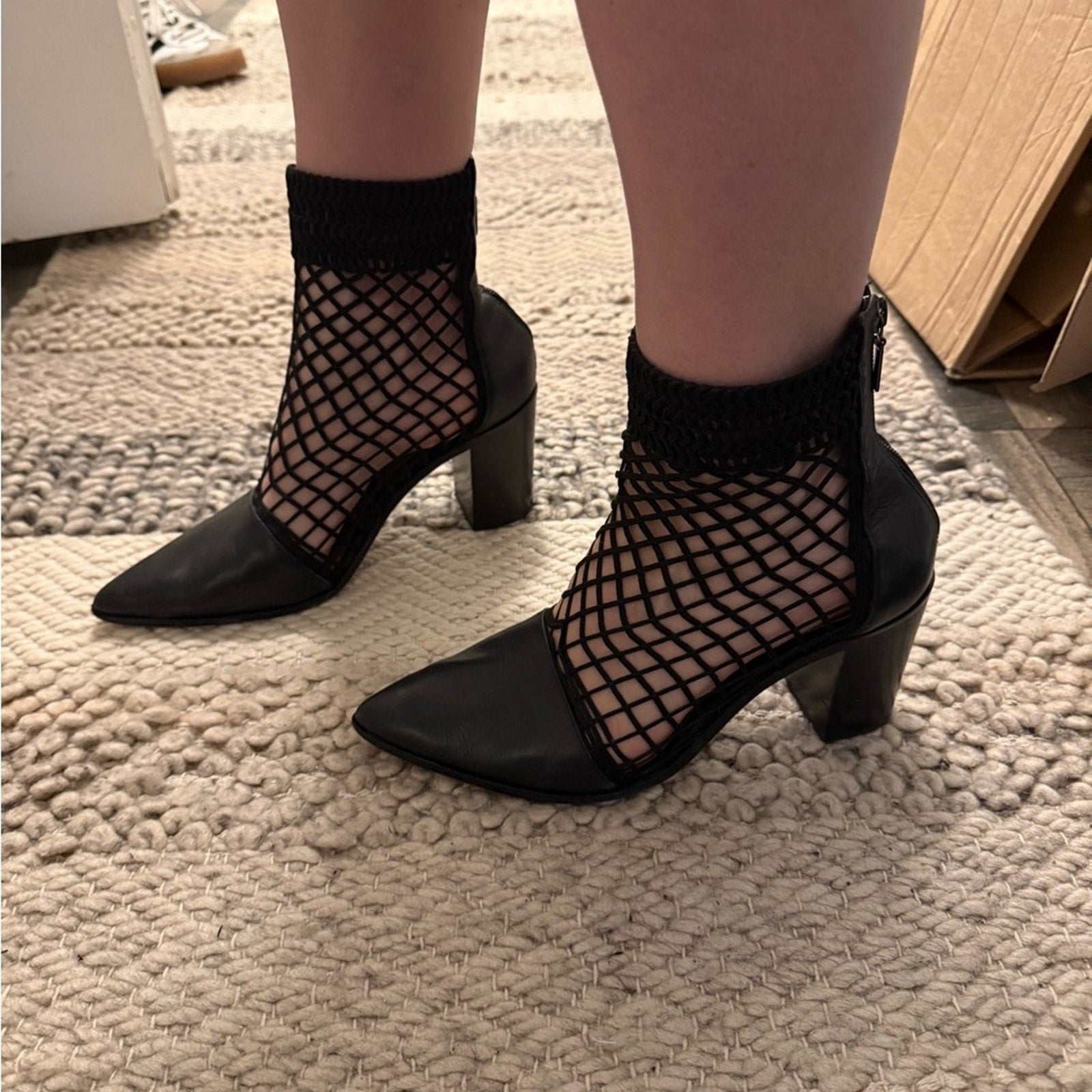 Step out in style with these chic black mesh heels. Perfect for any occasion, these shoes offer a unique blend of elegance and modern flair. Sexy and fun!